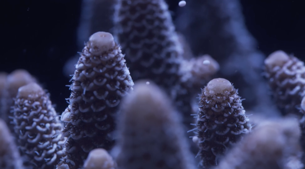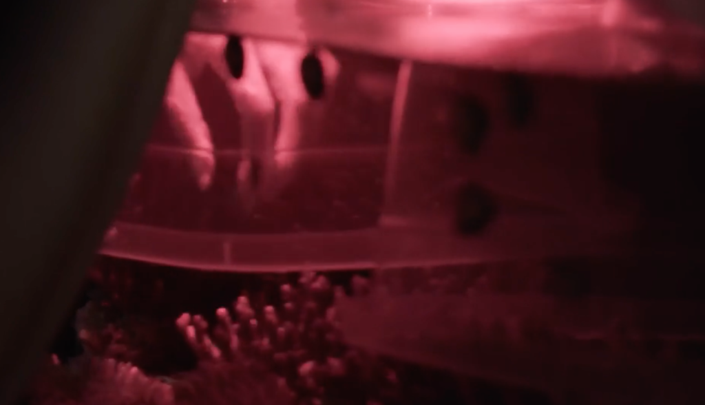 Le projet dirigé par Sonia Levy transgresse délibérément et méthodiquement les frontières entre sciences et arts, sciences humaines et écologie, notre histoire et nos futurs collectifs. C’est un projet qui mêle les récits et les narrations, les histoires de coraux et les histoires d’humains. For the Love of Corals montre soigneusement le processus de recherche et d’expérimentation nécessaire pour provoquer la naissance de coraux en aquarium. Loin d’être d’une froideur clinique, c’est plutôt un travail d’amour qui est documenté.